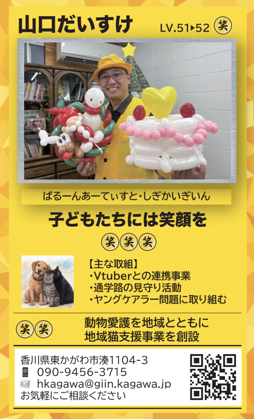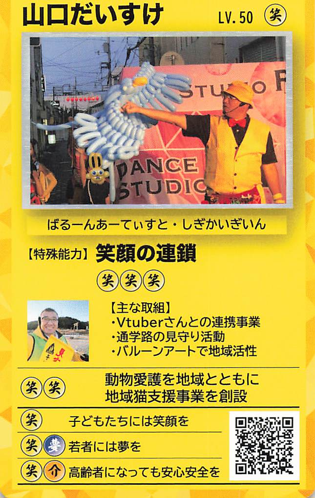 | ⑧バルーンカード パワーアップカード。地元では政治家より知名度が高いバルーンアートを全面に打ち出したカード。 風船の魔法で笑顔の連鎖を広げます | ![]() |
