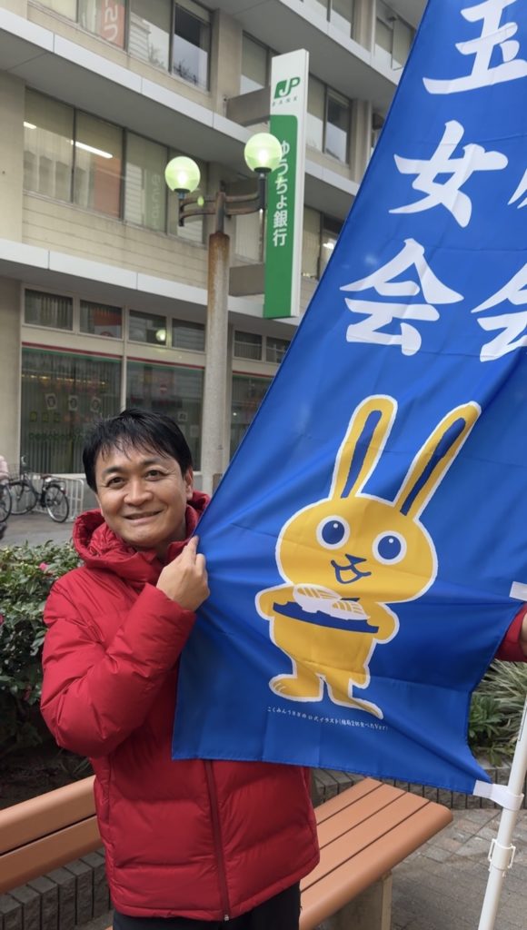 ちなみに今つけている市議会議員本人のタスキはこのために作成したものです。内容が内容なので国民民主党のロゴはつけれませんでした^^;